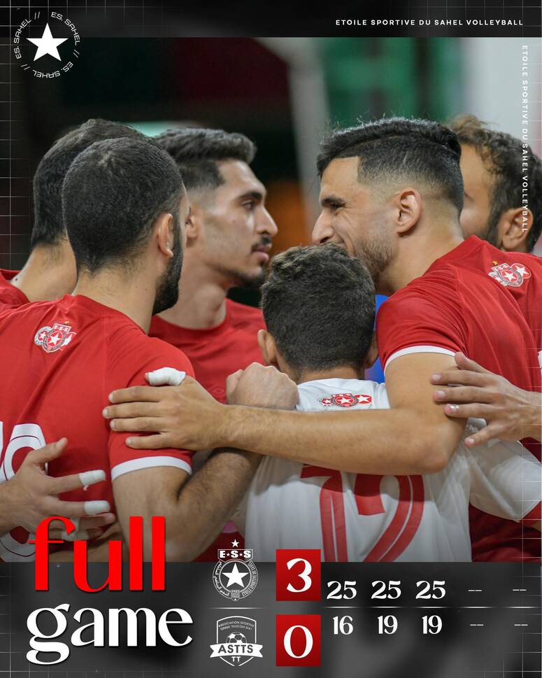 فاز النجم الساحلي على جمعية اتصالات صفاقس بثلاثة أشواط لصفر (25-16، 25-19، 25-19)، في المباراة التي دارت اليوم الأحد بقاعة صفاقس، في ختام منافسات الجولة الرابعة من بطولة القسم الوطني "أ" للكرة الطائرة ضمن المجموعة الثانية.