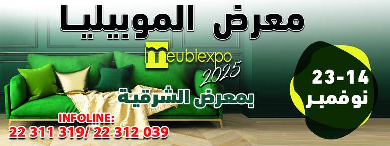 تنطلق يوم الجمعة 14 نوفمبر الجاري، فعاليات معرض الموبيليا، بمركز المعارض بالشرقية، ليتواصل الى غاية 23 نوفمبر الجاري، بمشاركة عدد من المؤسسات التونسية المختصة في صناعة الاثاث والمفروشات والتصميم الداخلي.