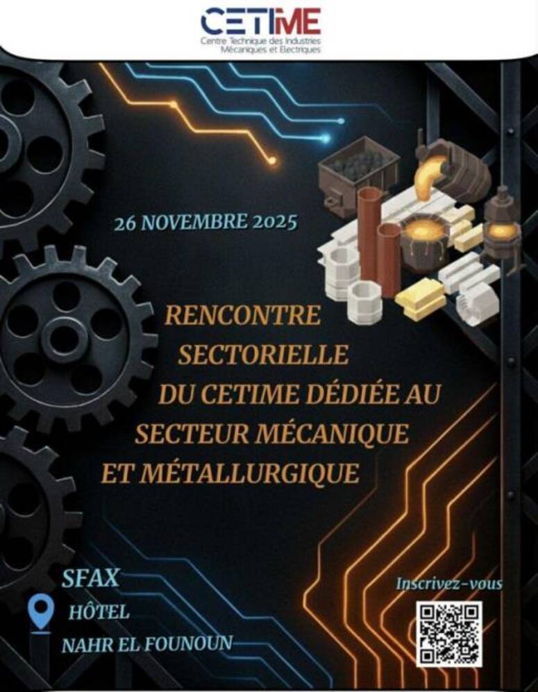 يعتزم المركز الفني للصناعات الميكانيكية والكهربائية، تنظيم الدورة الثالثة من اللقاءات القطاعية، الاربعاء 26 نوفمبر 2025، بمدينة صفاقس.