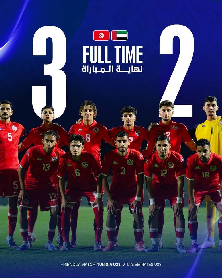 فاز المنتخب التونسي لكرة القدم لأقل من 23 عاما على نظيره الاماراتي 3-2 في المباراة الودية التي اقيمت بينهما اليوم الثلاثاء بملعب نادي الشارقة.