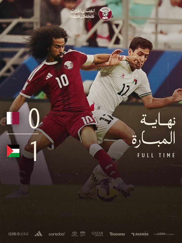 قاد هدف عكسي سجّله اللاعب سلطان البريك بالخطأ في مرماه، منتخبَ فلسطين إلى انتصار ثمين على قطر بنتيجة 1 – 0 في ختام مباريات الجولة الأولى من كأس العرب بالدوحة.