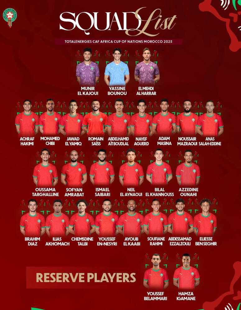 نهائيات كأس إفريقيا للأمم (المغرب-2025) ..وليد الركراكي يكشف عن اللائحة الرسمية للمنتخب المغربي