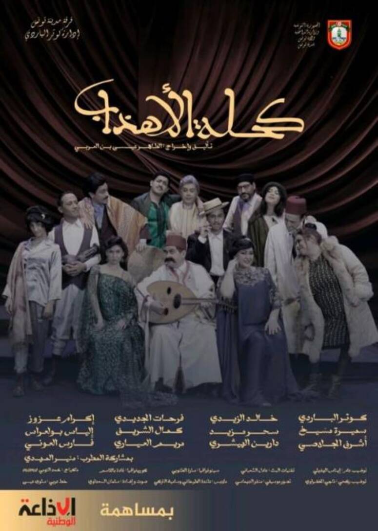 والعمل المسرحي"كحلة الأهذاب" هو عرض من إنتاج فرقة مدينة تونس للمسرح، تولى كتابته وإخراجه الطاهر عيسى بن العربي ويستكشف قضايا إنسانية تتقاطع مع التاريخ الوطني من بينها الحب والحرب وحب الوطن. ويشارك في المسرحية ثلة من الفنانين التونسيين تتقدمهم الممثلة كوثر الباردي التي تتولى أيضا إدارة الإنتاج، إلى جانب كل من فرحات الجديد وخالد الزيدي وإكرام عزوز وسميرة مسيخ. كما يشارك في العرض جيل من الفنانين الشباب وهم سحر مزيد وإلياس بولعراس وأشرف الجلاصي ودارين الهيشري ومريم العياري وفارس العوني وكمال الشريف، إضافة إلى مشاركة الفنان الموسيقي منير المهدي.