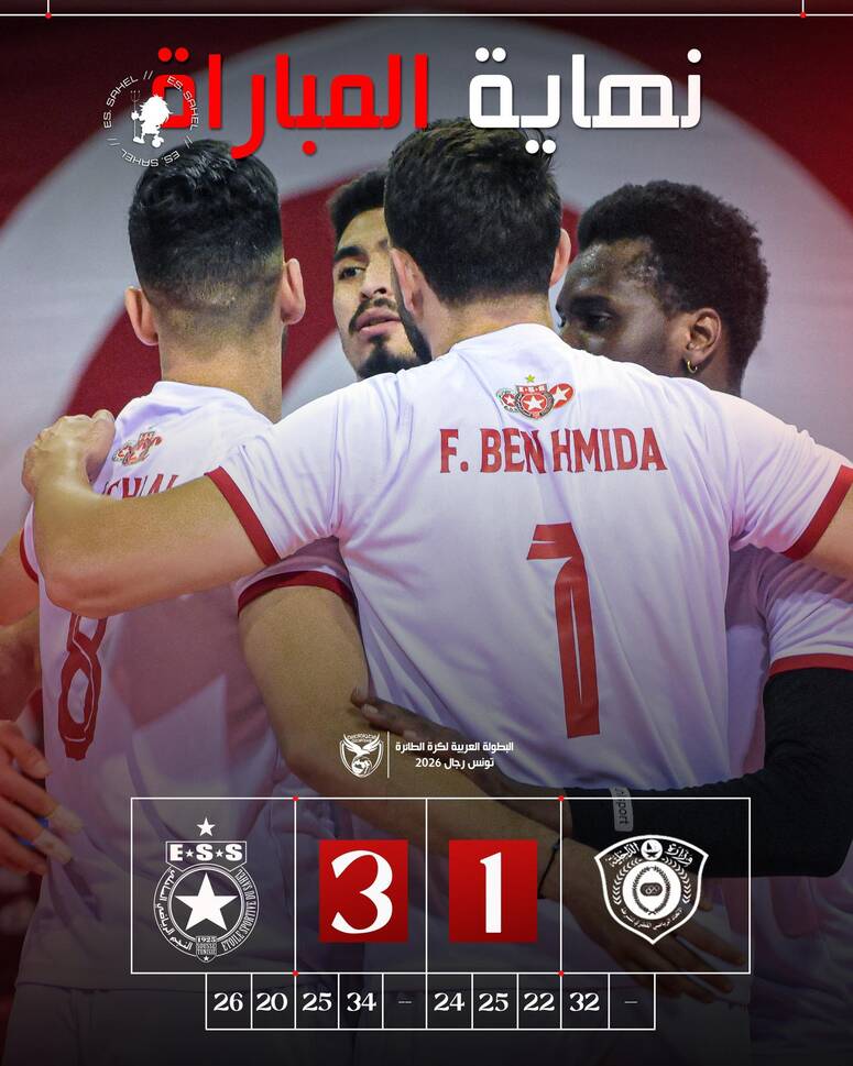 بطولة الأندية العربية للكرة الطائرة: النجم الساحلي يحقق فوزه الثاني على حساب الشرطة القطري