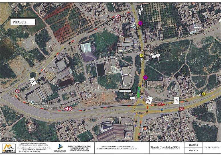 تُعلِم وزارة التجهيز والإسكان كافة مستعملي الطريق الجهوية رقم 31 أنّه، وفي إطار إنجاز أشغال مشروع حماية منطقة المنيهلة من الفيضانات (القسط عدد 1)، سيتمّ تحويل وقتي في مسار حركة المرور طيلة فترة الأشغال، التي تمتدّ على 60 يوماً ليلاً ونهاراً، وذلك ابتداءً من يوم الجمعة 26 فيفري 2026.