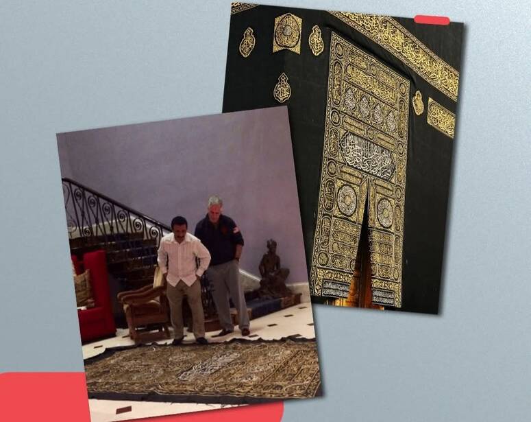 وتُظهر ملامح القطعة الظاهرة في الصورة زخارف وتفاصيل يُرجّح أنها تعود إلى ستار باب الكعبة، وهو ما أثار تساؤلات واسعة حول كيفية خروجها ووصولها إلى محيط إبستين، المعروف بضلوعه في قضايا تجارة الجنس واغتصاب القاصرات.
