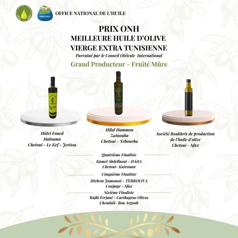 وقع اختيار 36 عيّنة فائزة في مسابقة الديوان الوطني للزيت لأحسن زيت زيتون تونسي بكر ممتاز في دورتها التاسعة.