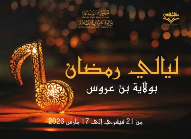 تحتفي ولاية بن عروس بليالي شهر رمضان من 21 فيفري إلى 17 مارس 2026، من خلال برنامج ثقافي متنوع أعدّته المندوبية الجهوية للشؤون الثقافية، وشمل مختلف المعتمديات.