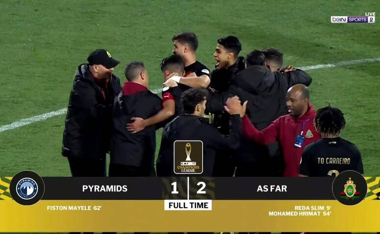 وأضاف محمد حريمات الهدف الثاني في الدقيقة 54 قبل أن يقلص فيستون مايلي الفارق لبيراميدز في الدقيقة 62 بضربة رأس لكن هذا لم يكن كافيا لصعود الفريق المصري للدور نصف النهائي بعد تعادله ذهابا 1-1.