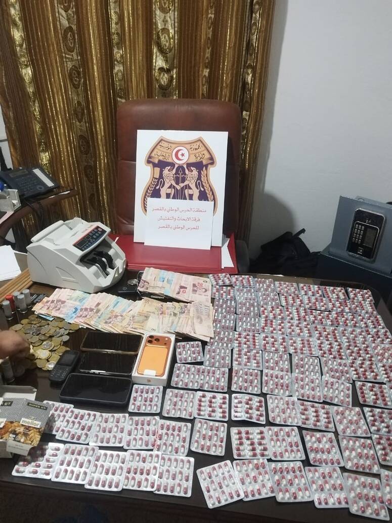 تمكّنت فرقة الأبحاث والتفتيش للحرس الوطني التابعة لمنطقة الحرس الوطني بمعتمدية القصر، اليوم الاثنين، من حجز 1200 قرص مخدر وكمية من خراطيش الصيد ومبلغ مالي، اثر مداهمة احد المنازل بمعتمدية المظيلة من ولاية قفصة، وفق مصدر من الحرس الوطني.