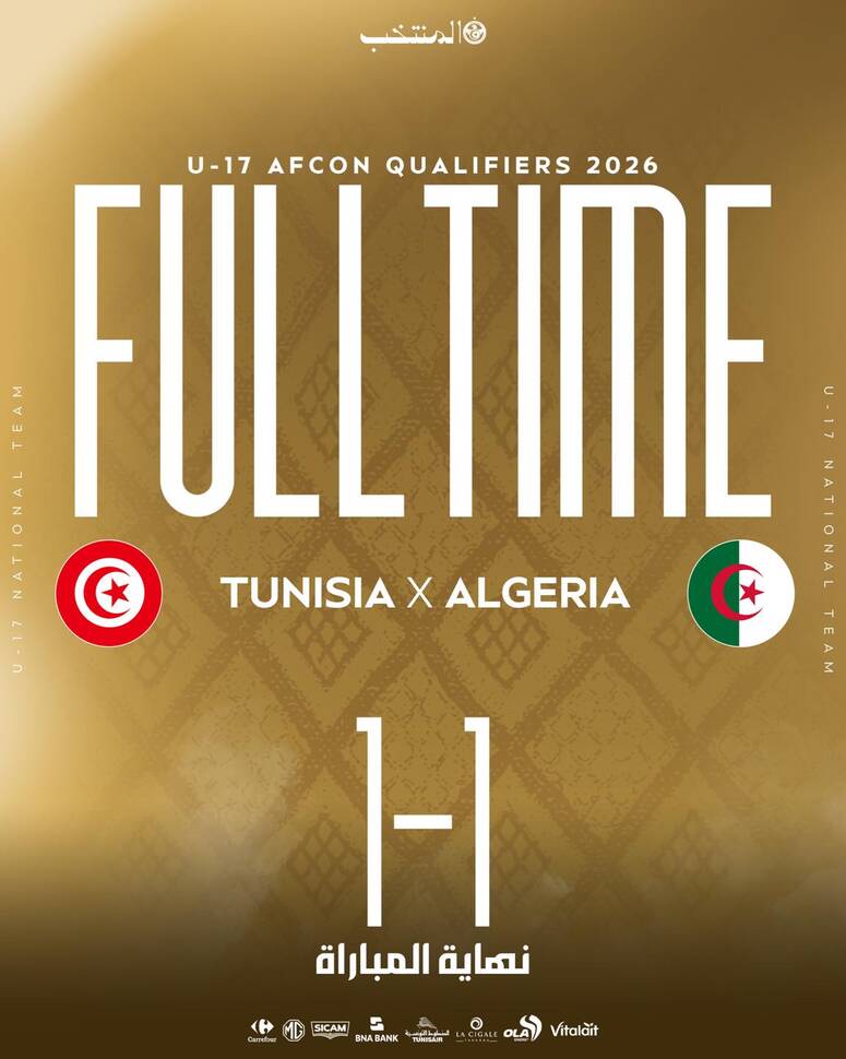 تعادل المنتخب التونسي تحت 17 عاما مع نظيره المنتخب الجزائري تحت 17 عاما بنتيجة 1-1، في المباراة التي جمعتهما اليوم الخميس بمدينة بنغازي، ضمن الجولة الرابعة من تصفيات اتحاد شمال إفريقيا المؤهلة إلى كأس أمم إفريقيا “المغرب 2026”.