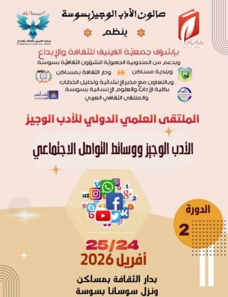 الدورة الثانية من الملتقى العلمي الدولي للأدب الوجيز يومي 24 و25 أفريل 2026
