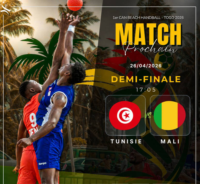 حجز المنتخب التونسي لكرة اليد الشاطئية بطاقة العبور إلى الدور النهائي لكأس إفريقيا للأمم، بعد فوزه على منتخب مالي بنتيجة 2-0، في مباراة نصف النهائي التي أقيمت مساء اليوم الأحد ضمن البطولة المقامة في الطوغو.