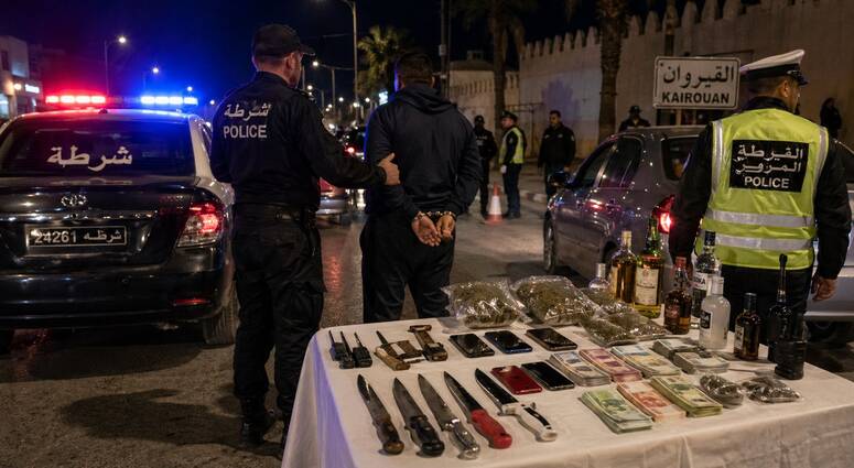 أسفرت حملة أمنية شاركت فيها، مساء أمس الثلاثاء، وحدات أمنية وشرطة المرور التابعة لمنطقة الأمن الوطني بالقيروان، عن إيقاف 45 شخصا مفتشا عنهم لدى العدالة في قضايا مختلفة، وعن حجز مجموعة من الأسلحة البيضاء، وأجهزة إلكترونية مجهولة المصدر، ومبالغ مالية، الى جانب كميات من المشروبات الكحولية ومن القنب الهندي، وفق مصدر أمني.