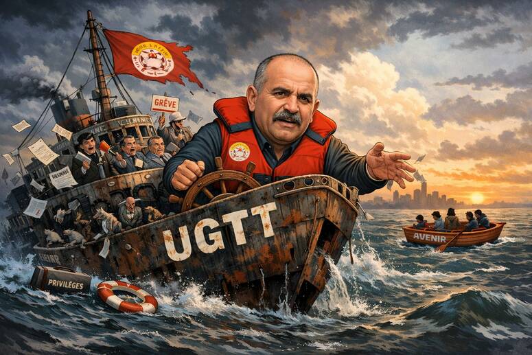 Au centre de cette grande pièce de théâtre socio-économique trônent des élites syndicales d’une autre époque, personnages fatigués, ventreux et verbeux, toujours en costume d’époque : l’UGTT.Ancienne force redoutée, aujourd’hui institution spectrale, elle continue de parler fort dans un pays qui n’écoute plus vraiment — surtout pas au travail.