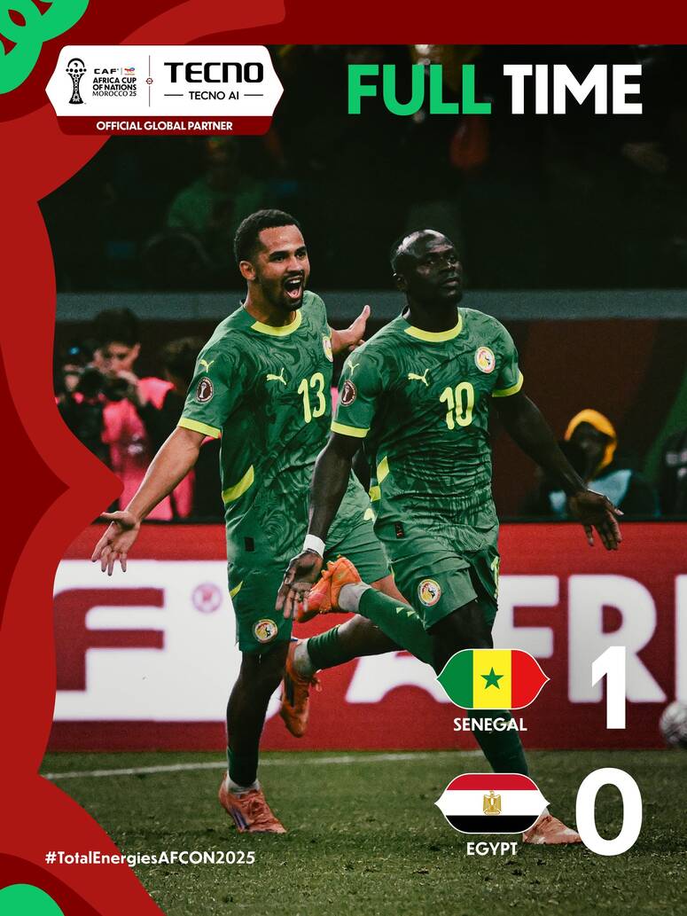 تأهّل المنتخب السنغالي إلى الدور النهائي لكأس أمم إفريقيا المغرب 2025، إثر فوزه مساء اليوم الأربعاء على المنتخب المصري بنتيجة 1–0، في مباراة نصف النهائي التي احتضنها ملعب طنجة الكبير.