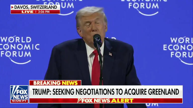 وأوضح ترامب، خلال مشاركته في المنتدى الاقتصادي العالمي بدافوس، أن اللجوء إلى القوة «غير مطروح»، قائلاً: «ليس لديّ حاجة لاستخدام القوة. لا أريد استخدامها ولن أستخدمها»، في ردّ على التكهنات التي أُثيرت سابقًا حول هذا الملف.