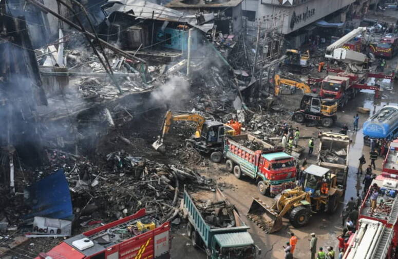 وواصلت فرق الإنقاذ تمشيط الحطام بحثا عن عشرات المفقودين الذين يخشى أن يكونوا قد لقوا حتفهم، بعد أن استمر الحريق قرابة يومين في المجمع الذي يضم 1200 متجر لبيع ملابس الزفاف والألعاب والأواني، في حريق وصفته وسائل الإعلام المحلية بأنه الأكبر منذ عقود.
