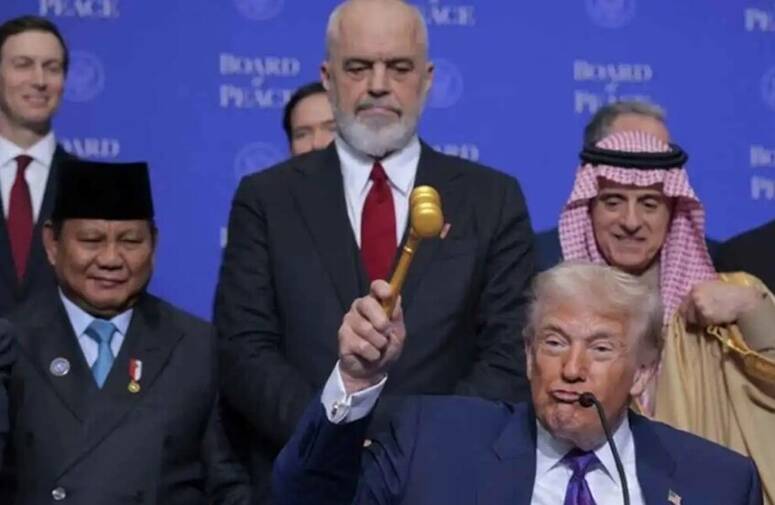 أثار الرئيس الأمريكي دونالد ترامب تفاعلاً واسعًا على وسائل التواصل الاجتماعي، بعد ظهوره في مقطع فيديو وهو يغادر اجتماعًا لما يُعرف بـ“مجلس السلام” ممسكًا بمطرقة قيل إنها مصنوعة من الذهب الخالص.