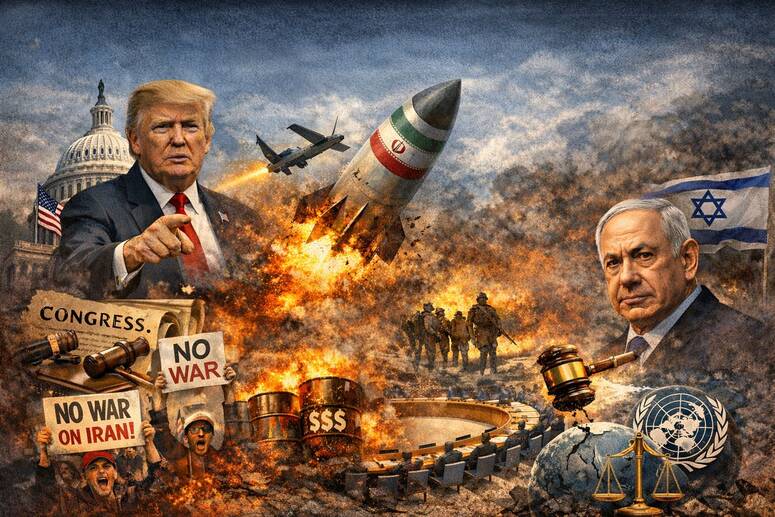 هجمات واسعة النطاق دون تفويض من الأمم المتحدة، وخطاب علني من واشنطن يدعو إلى تغيير النظام و هنا يطرح السؤال نفسه من فوض تلاامب للقبام بتلك الحرب. يدفع المرء للتساؤل: هل بقيت أي قواعد؟ ماذا يقول القانون الدولي