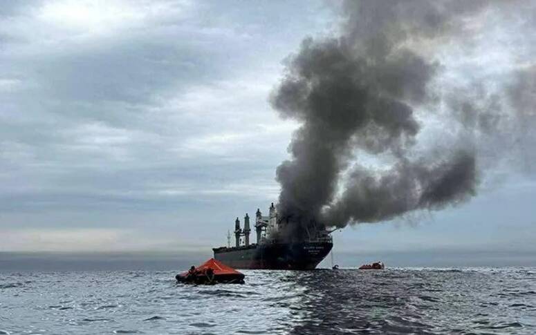 A Thai-flagged cargo ship was hit by Iranian missiles last week in the Strait of Hormuz Credit: Royal Thai Navy