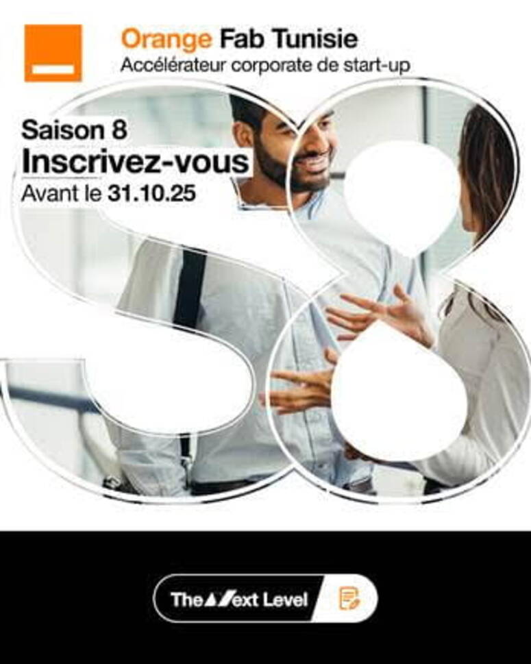 Orange Fab Tunisie annonce le lancement de la 8ème saison de son programme d’accélération, destiné aux start-up tunisiennes innovantes. Les candidatures sont ouvertes jusqu’au 31 octobre 2025 via orangefab.tn/candidater.