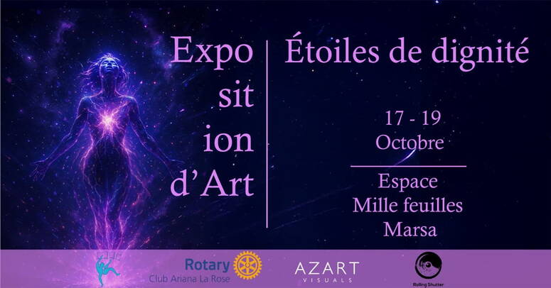بلاغ صحفي - في مبادرة إنسانية فريدة تجمع بين الإبداع والعمل الميداني، أعلن نادي روتاري أريانة لا روز عن تنظيم معرض فني بعنوان «نجوم الكرامة»، بالتعاون مع الفنانة والخبيرة في الفن الرقمي ألفة دبّابي، وذلك بفضاء ميل فوي بالمرسى.
