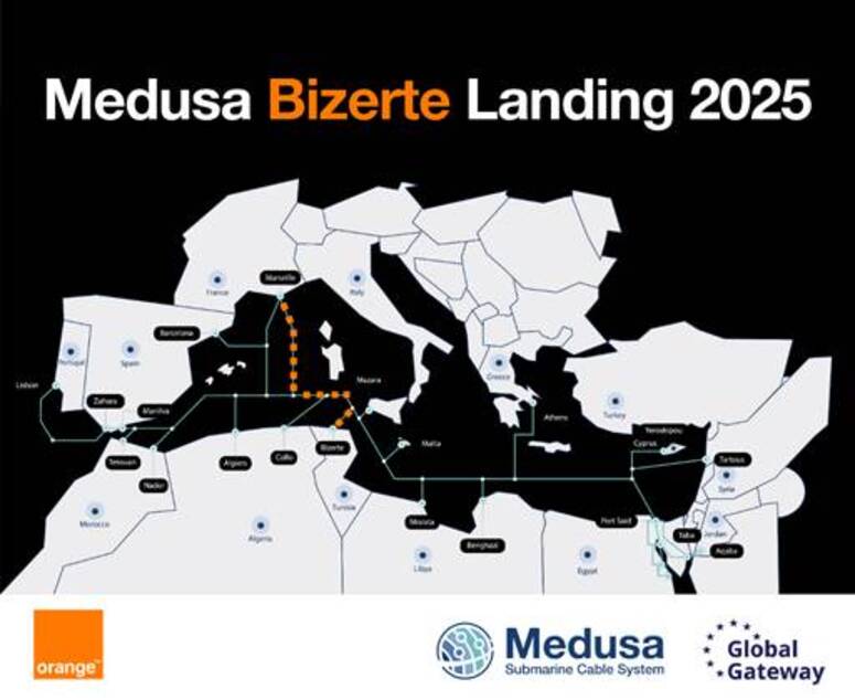 Orange Tunisie et Medusa Submarine Cable System ont annoncé l’atterrissement du câble sous-marin MEDUSA à Bizerte, marquant une étape décisive dans le renforcement de la connectivité numérique de la Tunisie et son intégration dans l’économie mondiale.La Tunisie devient le premier pays africain à accueillir le câble MEDUSA, une infrastructure de plus de 8 000 km, reliant à terme treize pays d’Afrique du Nord, d’Europe du Sud et du Proche-Orient. Ce système, le plus vaste réseau de fibre optique sous-marine de la Méditerranée, reliera directement Bizerte à Marseille, où le câble a déjà atterri le 8 octobre dernier.