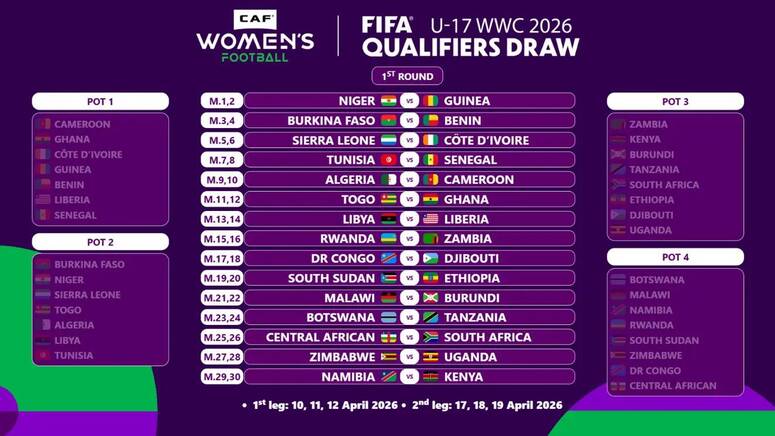 تصفيات كأس العالم لكرة القدم للسيدات أقل من 17 سنة 2026: تونس تواجه السنيغال في الدور الاول