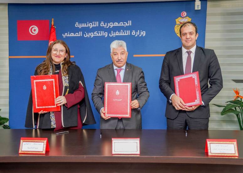تمّ، يوم الإثنين، بمقر وزارة التشغيل والتكوين المهني، إمضاء 7 اتفاقيات شراكة تتعلّق بتمويل إحداث المشاريع ودعم التشغيل، وذلك بإشراف وزير التشغيل رياض شوّد ووزيرة المالية مشكاة سلامة الخالدي، وبحضور مسؤولي المؤسسات البنكية المعنية.