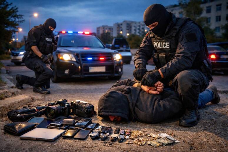 وبعد جملة من التحريات الميدانية الدقيقة وعمليات المراقبة المستمرة، تمكنت الوحدات الأمنية من محاصرة المشتبه به والإطاحة به في حالة تلبس. كما أسفرت العملية عن حجز كمية هامة من المسروقات التي كانت بحوزته، والمتمثلة في معدات إلكترونية وأغراض شخصية تعود لضحاياه.